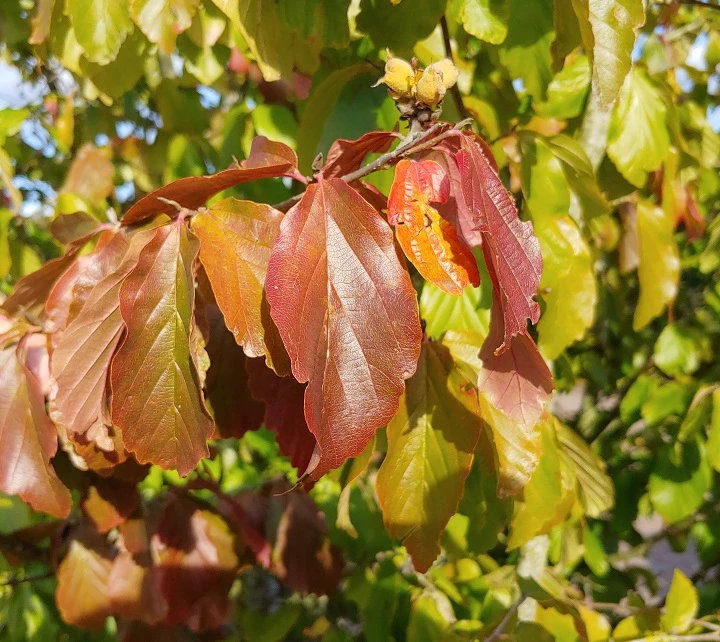 Der Eisenholzbaum oder auch Eisenbaum verdankt seinen Namen der hohen Holzhärte. Aufgrund seiner lang anhaltenden Herbstfärbung erfreut sich der kleine Baum oder Großstrauch hoher Beliebtheit. Die Herbstfärbung variiert von gelb über orange, bis hin zu scharlachrot und violett. Das Gehölz ist anpassungsfähig, pflegeleicht und anspruchslos. Es wird eine Höhe von ca. 5 Metern und eine Breite von ca. 3 Metern erreicht, wobei die Wuchsleistung stark vom Standort abhängig ist und der Eisenholzbaum daher auch höher werden kann. Im zeitigen Frühjahr verleihen die zahlreichen, roten Blütenbüschel dem Eisenholzbaum bereits hohen Zierwert und dienen den ersten Wildbienen als Nahrungsquelle. Das Blattwerk ist dunkelgrün und ledrig, oft mit dunkelrotem Rand. Seine Verwendung findet die Pflanze in Einzelstellung in Parks, Freiflächen oder großen Gärten.
