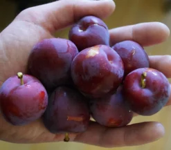 Prunus salicina, Jap. Pflaumen sind hierzulande noch weitestgehend unbekannt. In Osteuropa und in den USA beschäftigt man sich seit einigen Jahren mit dieser interessanten Frucht. Grundsätzlich bestechen die jap. Pflaumen durch ihre üppige Blüte, die Fruchtgröße und den hohen Ertrag.Sie sind absolut winterhart und wachsen zu einem mittelgroßen Baum heran.